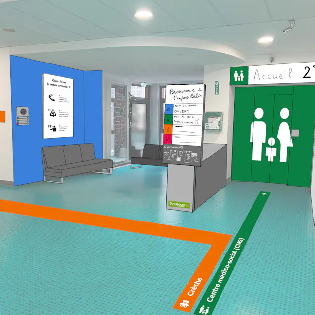 Suite à une première mission d'évaluation de l'expérience d'accueil, les agents des différents services ont alors été engagé dans une démarche de co-construction pour imaginer une signalétique inclusive, en utilisant la méthodologie FALC (Facile à Lire et à Comprendre) pour garantir une meilleure compréhension et orientation dans le lieu.